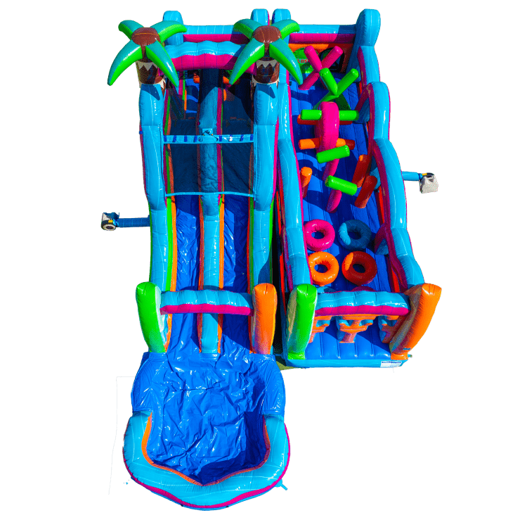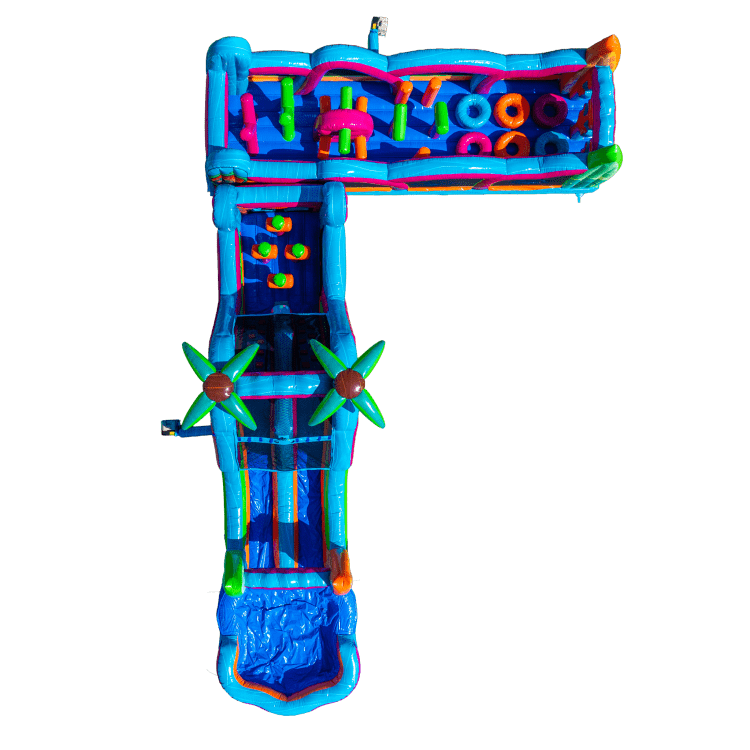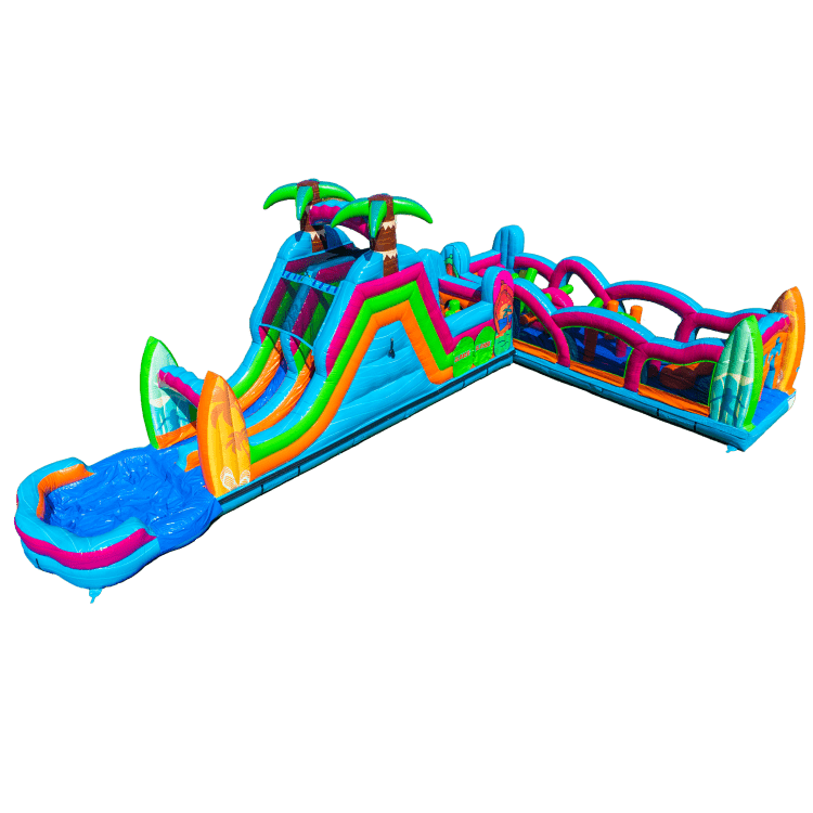 Race through a vibrant 67-foot Neon Tropics Modular Obstacle Course that turns any party or event into a high-energy tropical adventure. This modular inflatable course features bright neon colors and a variety of engaging challenges—tunnels, climb-and-slide sections, hurdles, and weaving obstacles—designed to test speed, agility, and teamwork. At 67 feet long, it provides a fast-paced, exciting run for kids, teens, and active adults, making it ideal for school events, corporate team-builders, birthday parties, and community festivals. Durable construction and reinforced seams create a safe, stable experience, while the modular design allows flexible setup to suit different spaces and event layouts. Easy to supervise and quick to inflate, this obstacle course delivers non-stop fun and competitive thrills that keep participants—and spectators—energized from start to finish.