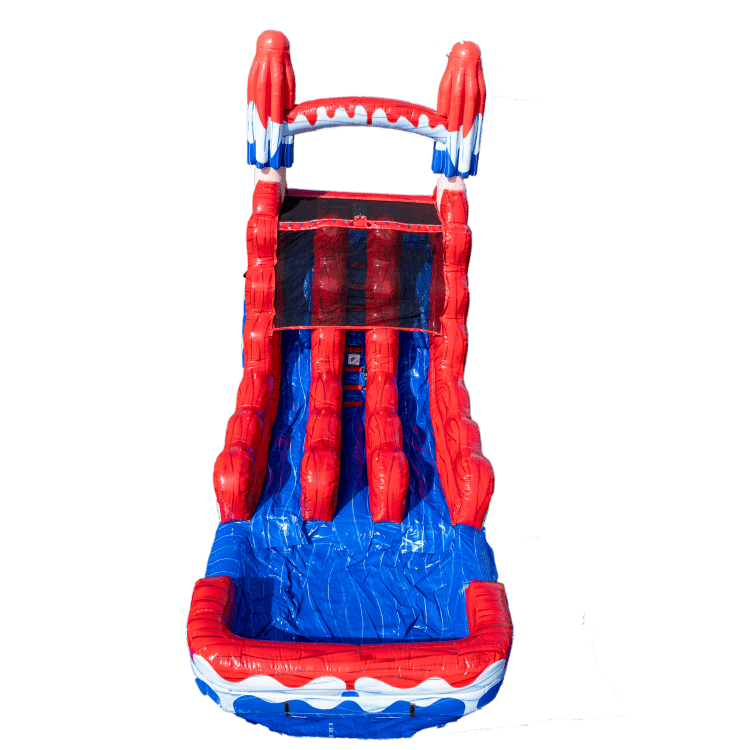 This eye-catching 16-foot dual-lane slide features a bright red, white, and cool popsicle color scheme that adds a festive, summery vibe to any event. Designed for two riders at once, the dual lanes let friends race side-by-side for extra excitement while keeping traffic moving smoothly. At 16 feet tall, it delivers thrilling, fast slides while maintaining a manageable height for party settings, school events, and community gatherings. Built for rental use, it’s easy to set up and supervise, with wide lanes and a safe landing area that help keep riders comfortable and contained. Ideal for birthday parties, block parties, company picnics, or any celebration that needs a bold, colorful centerpiece that’s as fun to look at as it is to ride.